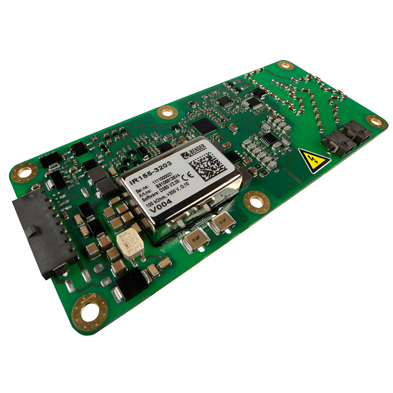 IR155-4203/-4204 och IR155-3203/IR155-3204 isolationsövervakningsenhet från Bender övervakar isolationsmotståndet mellan de isolerade och aktiva HV-ledarna i ett elektrisk drivsystem (Un = DC 0 V ... 1000 V) och referensjorden (chassijord> Kl.31 ).