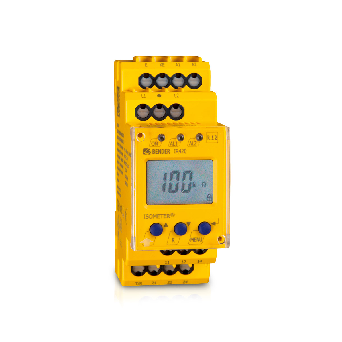 ISOMETER IR420 serien är avsedd att övervaka isolationsresistansen i mindre isolerade nät (IT-nät) och styrkretsar, 0…300 V AC.